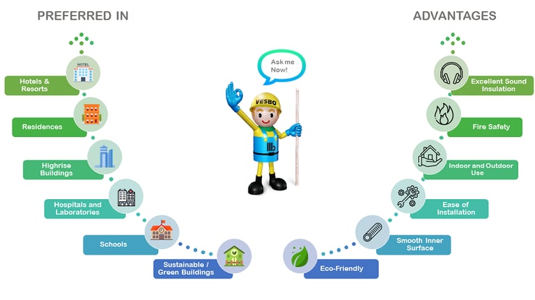 VESBO Incola Silent Pipes are advanced plumbing solutions designed for ultra-quiet performance, with noise levels as low as 12 dB at 4 L/s flow. Engineered for durability and efficiency, they provide excellent sound insulation, smooth flow, and long-lasting reliability—making them ideal for residential, commercial, and high-end projects.
